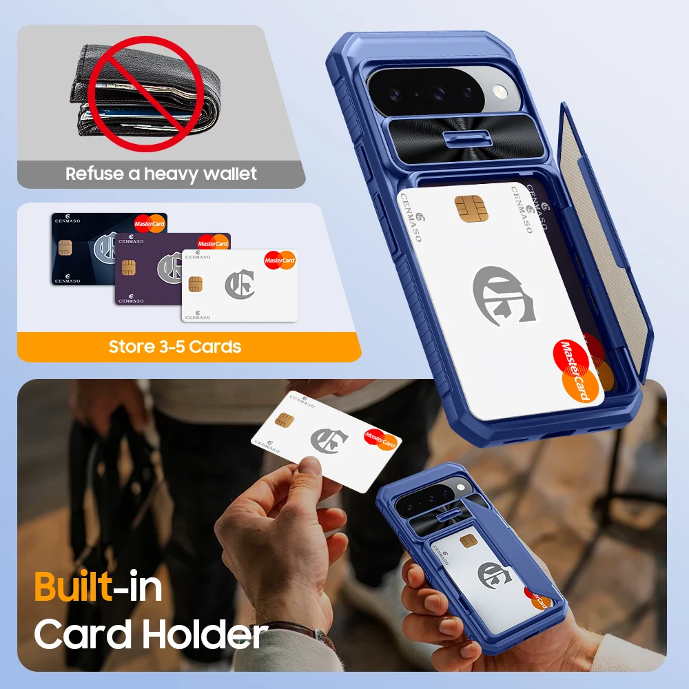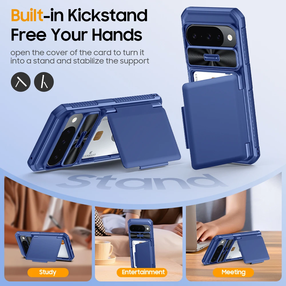 Safeguard your investment with unyielding military-grade drop protection. This full-body rugged case is engineered to absorb the most punishing shocks, ensuring your Google Pixel 10 survives the unexpected. With a matte, non-slip grip and a 1.5mm raised screen bezel, you will feel the confidence of heavy-duty security in every palm. Simplify your journey using the built-in storage compartment that securely holds 3–5 cards. Ingeniously designed, the card door doubles as a stable kickstand for your study or entertainment needs.