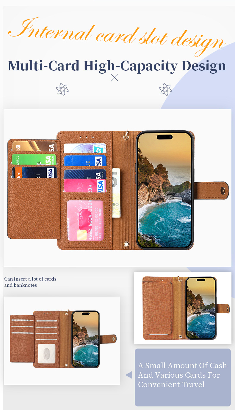 Simplify your life with our zipper wallet leather iPhone case. Securely store cards, cash, and essentials in the zippered compartment, while dedicated card slots keep your most-used items within easy reach. Enjoy ultimate convenience and organization. Experience robust protection with our shockproof and anti-fall design. Magnetic absorption ensures a secure hold, while the built-in bracket provides hands-free viewing. This case does it all.